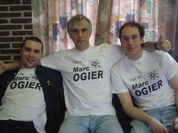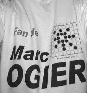 Et maintenant, je vais sans doute apprendre quelque chose à tous ceux qui ont suivi la saga de Marc 0gier. J’avais déniché un ami prêt à débarquer au championnat de France des clubs, les 3 et 4 avril (où tout son fan club devait arriver en arborant le tee shirt). Doté d’un sens de l’improvisation très aiguisé, il serait entré en trombe en plein milieu d’une ronde et aurait déclaré, l’air ahuri, être Marc 0gier. J’admets que l’idée est discutable. Quoi qu’il en soit, la compétition a finalement été repoussée à juin. Entretemps, Marc 0gier était devenu une légende.