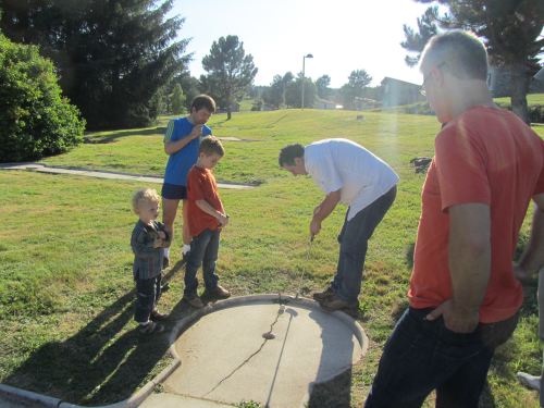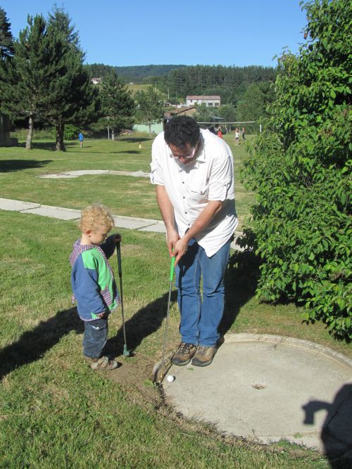 Stéphane donne une leçon de minigolf à Robin (ou l’inverse !)