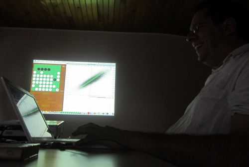 Présentation studieuse dans l’obscurité de notre salle de cours.