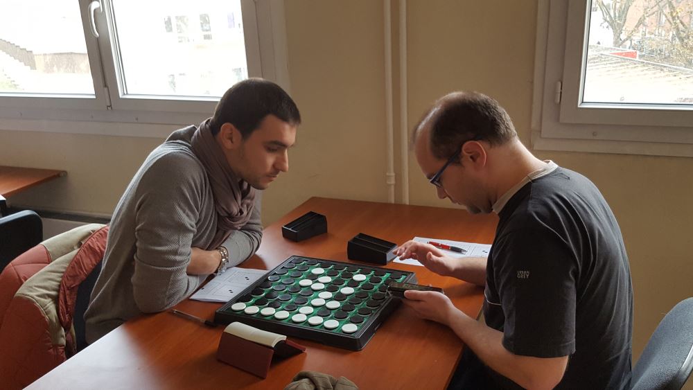 Le 26 novembre dernier s’est déroulé le 8e tournoi Ile de France de l’année, baptisé comme il se doit tournoi IDF8. Dix joueurs ont fait le déplacement pour en découdre durant les traditionnelles cinq rondes du non moins traditionnel système suisse. Parmi eux, deux des trois joueurs de l’équipe de France qui ont participé aux championnats du monde d’Othello il y a quelques semaines : Arnaud Delaunay et Takuji Kashiwabara.