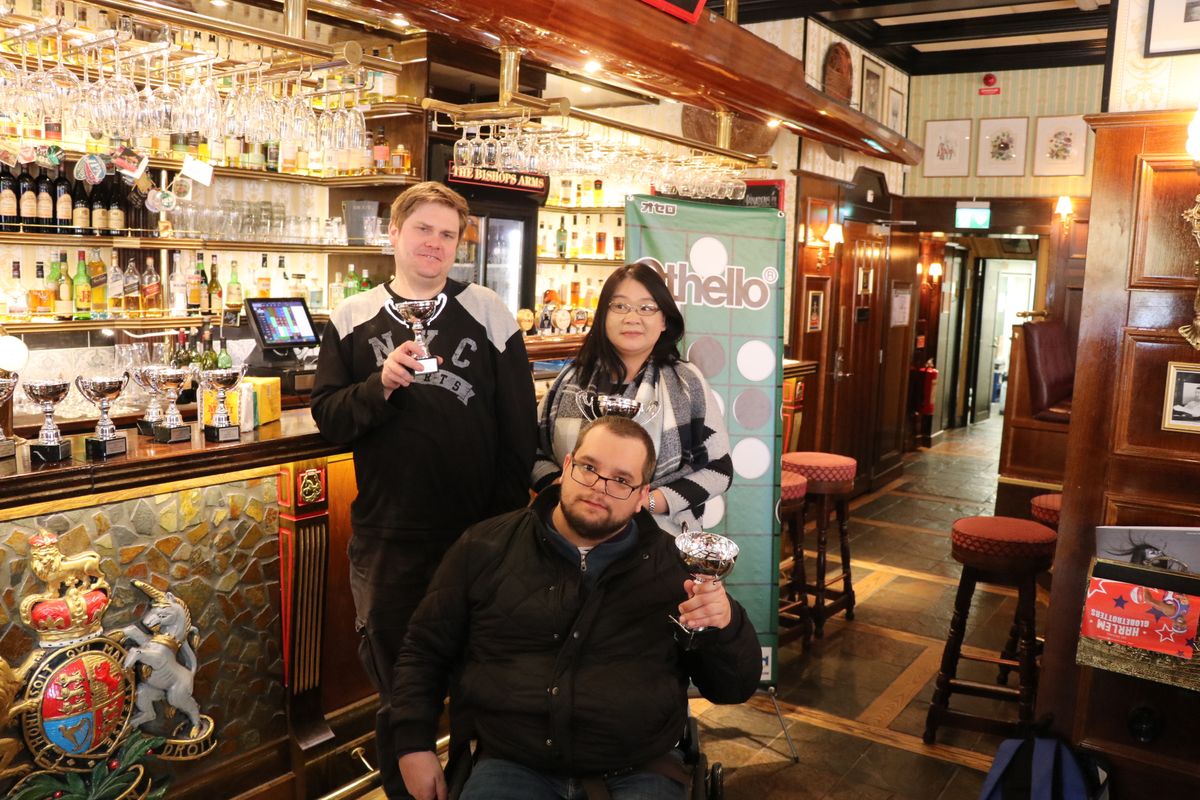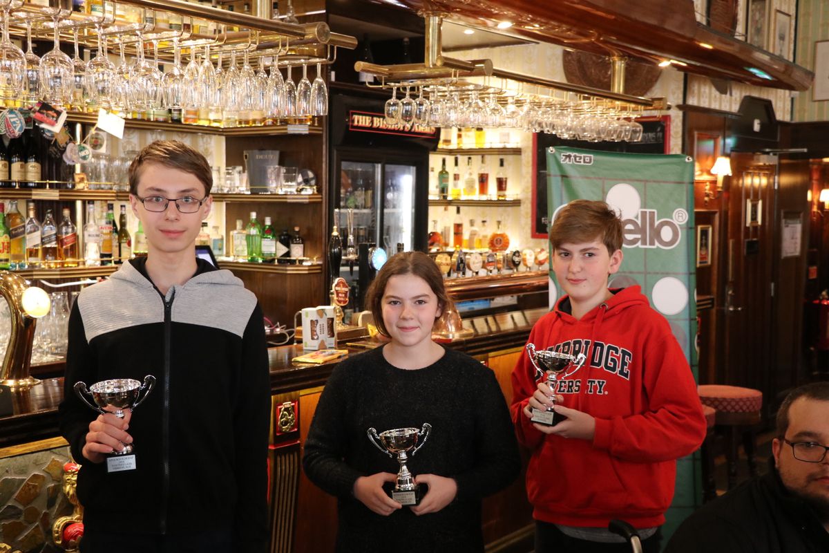 La remise des prix a été fort longue car il y avait quelque chose pour presque tous les participants. En effet, les joueurs étant divisés en 4 catégories en fonction de leur classement. Certains ont même gagné 2 coupes, comme Rémi Tastet (améliorant son record personnel avec 5,5 sur 11 dans un tournoi du GPE), à la fois premier junior et deuxième de sa catégorie derrière le Suédois Rikard Fahleson. Sophie Tastet a ramené la coupe de deuxième junior (avec 4,5 sur 11, record personnel aussi). En fait, il n’y a quasiment que Takuji Kashiwabara et Marc Tastet qui n’ont rien eu à la distribution des prix…