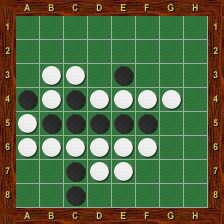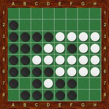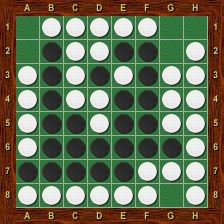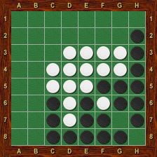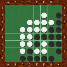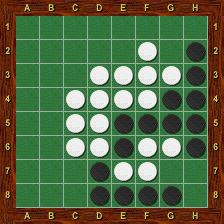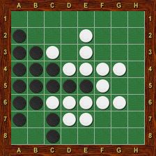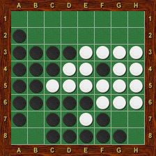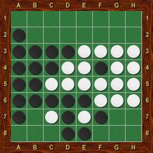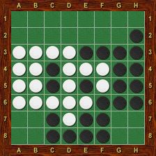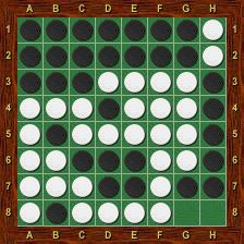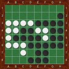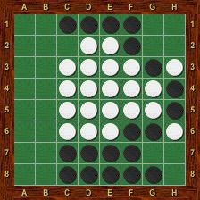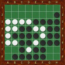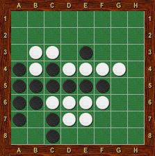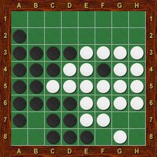 Blanc est alors obligé de jouer le premier dans chacun des deux trous au nord-ouest et au nord-est. La partie se termine par g2-h1-g1-a1-a2, Blanc passe, Noir porte le coup de grâce en g8 et gagne 37-27.