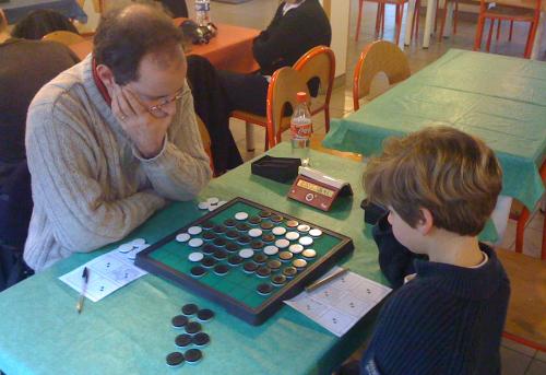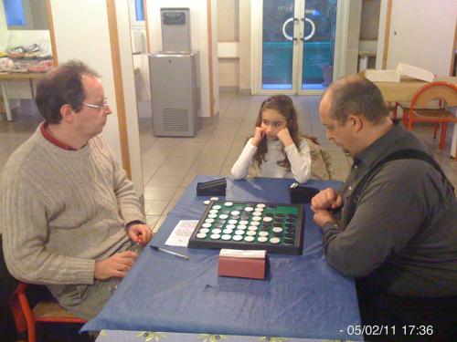 Merci à Serge Benoit d’avoir transporté les jeux et les pendules, ainsi qu’à Alexis Kleiner pour son hospitalité au foyer Maurice-Maignen (et félicitations pour ses deux victoires convaincantes, avec plus de 50 pions).